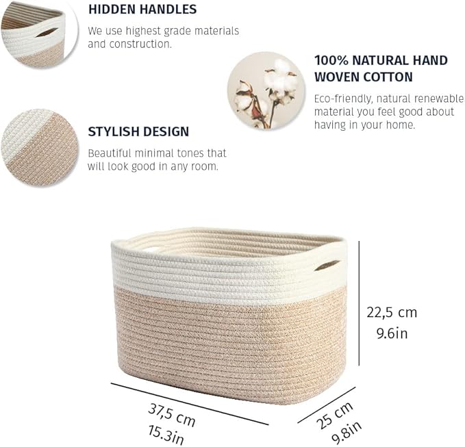 OrganiHaus Toy Storage Bins | Nursery Storage Basket | Towel Baskets for Bathroom | Woven Baskets for Storage | Decorative Baskets for Storage | Cotton Rope Baskets for Storage - Rainbow Basket