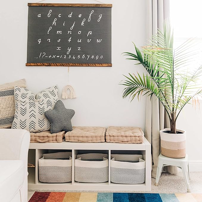 OrganiHaus Woven Basket for Storage, Baby Room Furniture, Decorative Towel Baskets for Bathroom, Cotton Rope Basket for Storage, Woven Baskets for Organizing, Rectangular Storage Basket, Grey