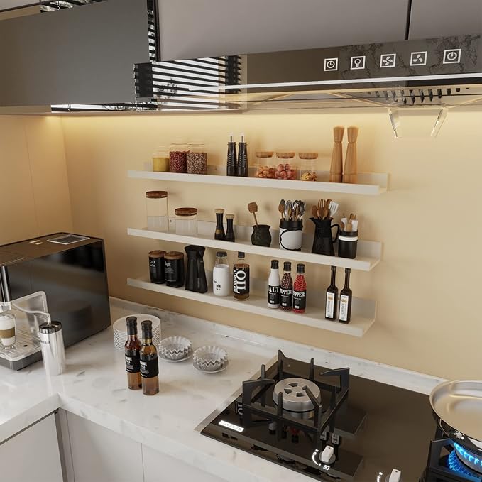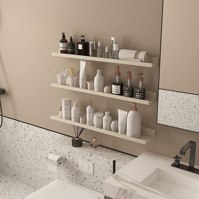 Giftgarden 36 Inch Floating Wall Shelves Creamy White Beige Wood-Grain, Large Picture Ledge Long Wooden Shelfs for Bedroom Living Room Kitchen Bathroom Nursery Office, Set of 3 Different Sizes