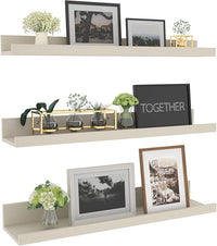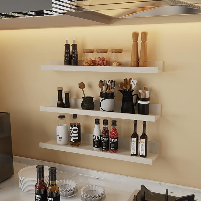 Giftgarden 24 Inch Floating Shelves for Wall, Creamy White Beige Wood-Grain Wooden Shelf Ledge for Bathroom Kitchen Living Room Nursery Bedroom Picture, Set of 3 Different Sizes