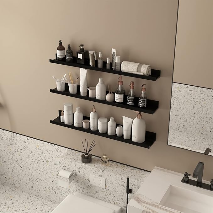 Giftgarden 36 Inch Black Floating Shelves for Wall Woodgrain Picture Ledge Large Photo Shelf for Bedroom Living Room Kitchen Bathroom Storage Shelving, Set of 3 Different Sizes
