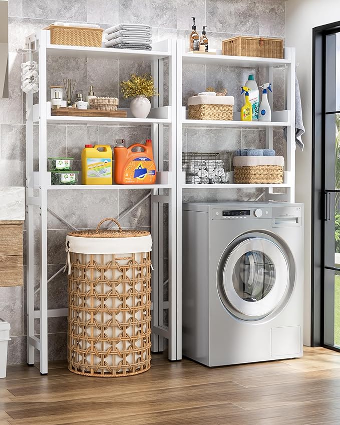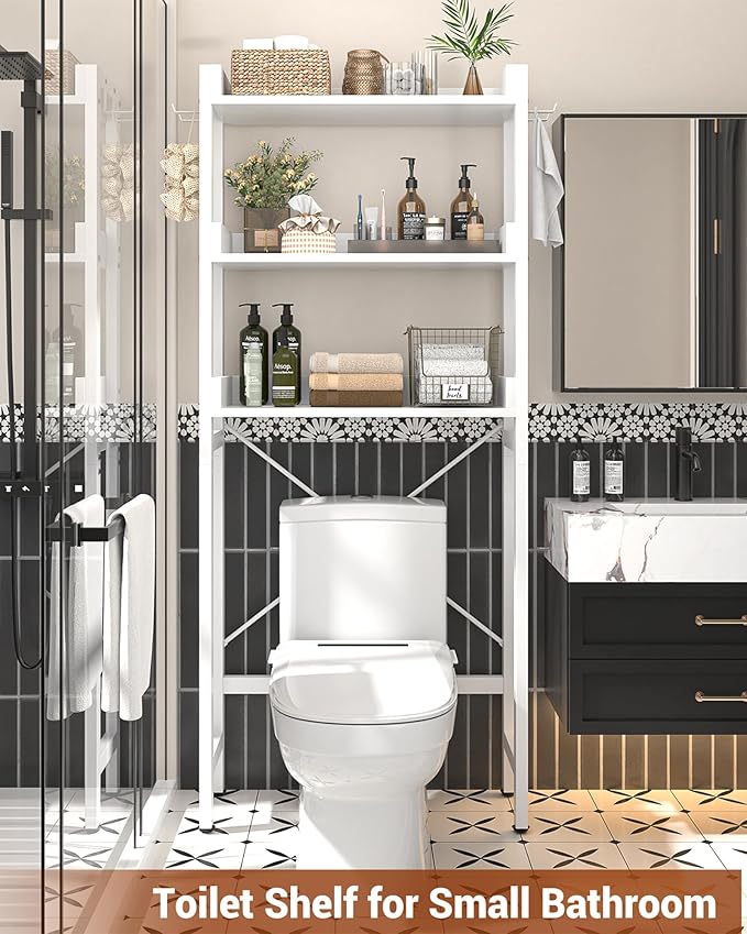 Ecoprsio Over-The-Toilet Storage Rack, 3-Tier Bathroom Organizer Shelf Over Toilet, Freestanding Space Saver Toilet Stands with 4 Hooks, White