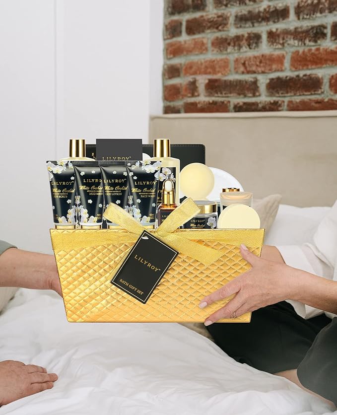 Mothers Day Gifts for Mom - Luxury 18-Piece Gold Leather Spa Gift Set, Premium Bath Collection with Bath Bomb | Father's Day Christmas Birthday Gifts, All Occasion Ultimate Holiday Gift for Her & Him
