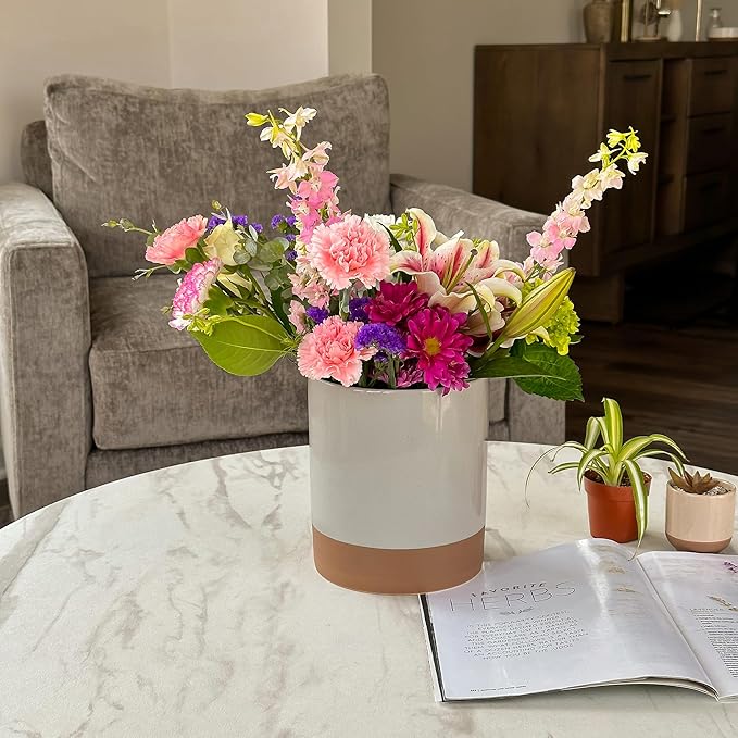 Mora Ceramic Kitchen Utensil Holder - Wooden Spoon & Spatula Crock for Countertop, Modern Farmhouse Home Decor, Extra Large 7.3" Cooking Organizer for Stove Top and Counter - Heavy & Sturdy - Grey