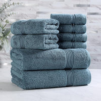 Superior Egyptian Cotton 8-Piece Towel Set, Assorted Towels for Home Bathroom, Guest Bath Decor Essentials, Includes 2 Bath, 4 Hand, 2 Face Towels/Washcloths, Quick Dry, Absorbent, Sapphire
