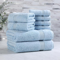 Superior Egyptian Cotton 8-Piece Towel Set, Assorted Towels for Home Bathroom, Guest Bath Decor Essentials, Includes 2 Bath, 4 Hand, 2 Face Towels/Washcloths, Quick Dry, Absorbent, Light Blue