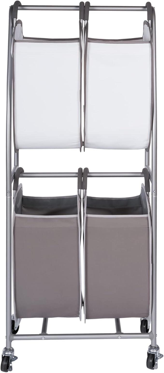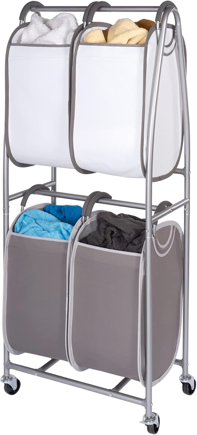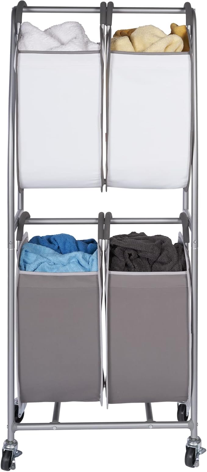 Neatfreak - 2 Tier Vertical Rolling Laundry Cart - Rolling Storage Cart On Wheels With 4 x Tote Hampers For Laundry, Towels, Blankets & Bathroom Organization - Quad Laundry Sorter