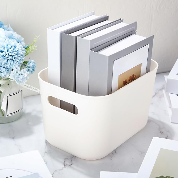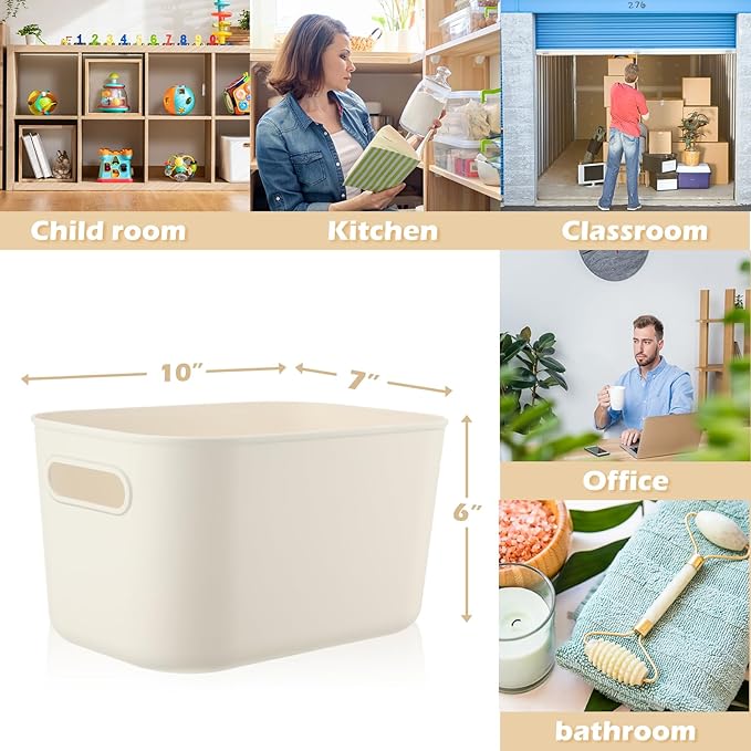 Zopeal Plastic Storage Bins 10 Pcs White Pantry Organizer Bins Small Baskets Storage Containers for Home Kitchen (10 x 7 x 6 Inch)