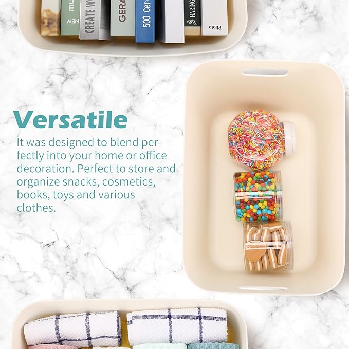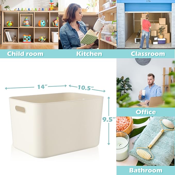 Zopeal Plastic Storage Bins 10 Pcs White Pantry Organizer Bins Small Baskets Storage Containers for Home Kitchen (14 x 10.5 x 9.5 Inch)