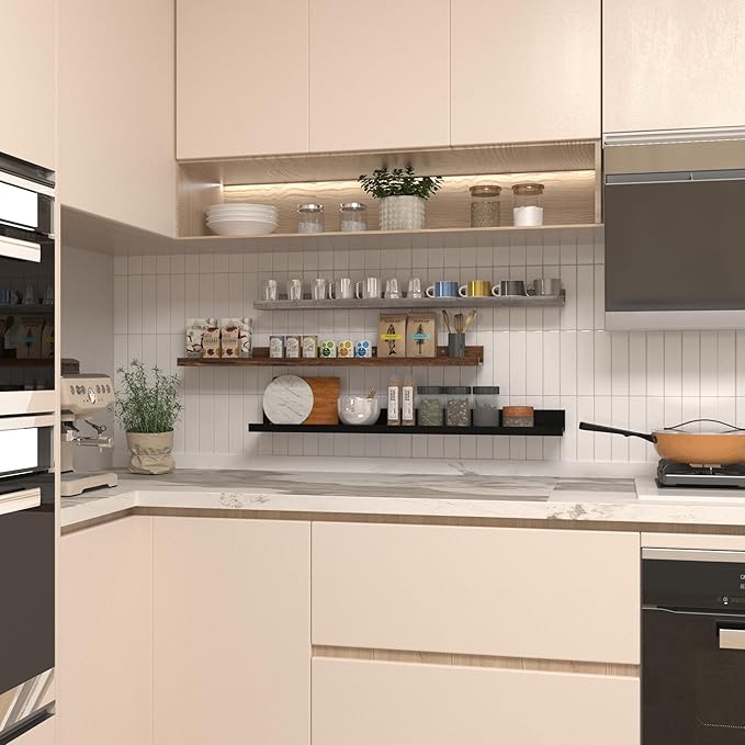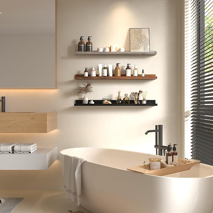 Giftgarden 36 Inch Multi Colors Floating Shelves for Wall Mount, Assorted Colors Wood Wall Shelf Ledge for Bathroom Bedroom Living Room Kitchen Storage, Set of 3 Different Sizes