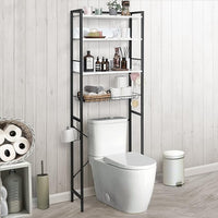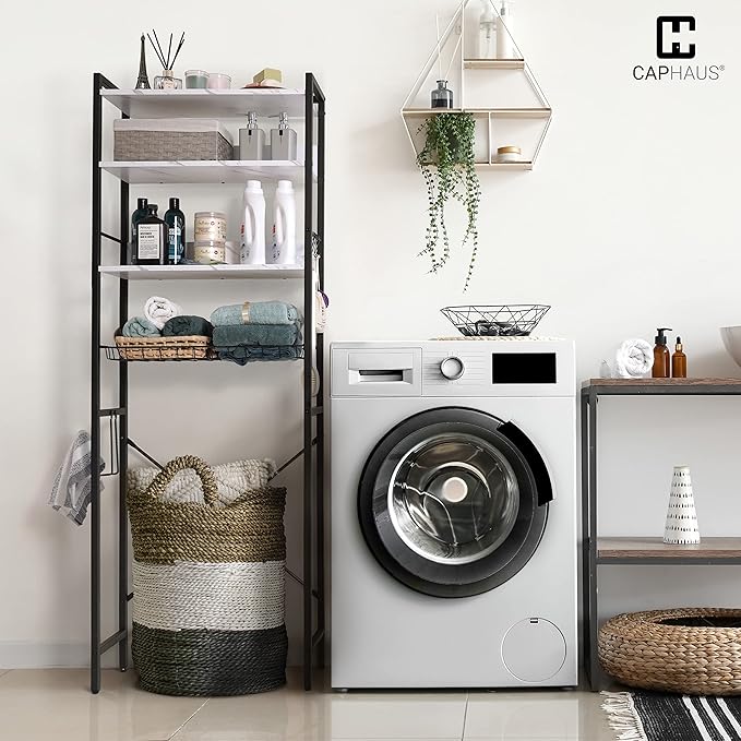 CAPHAUS Over The Toilet Storage, 4-Tier Bathroom Organizer, Freestanding Toilet Shelf, Multifunctional Space Saver Toilet Rack with 4 Hooks, Laundry Organizer, Plant Stand for Balcony (Marble White)