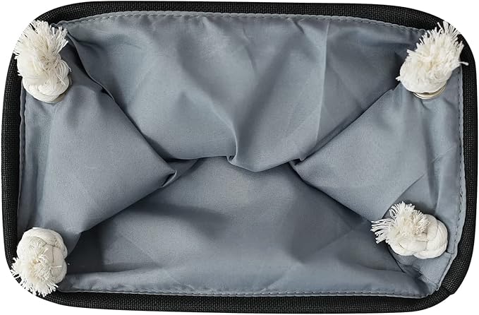 TheWarmHome Storage Basket for Organizing - 12x8x5.2 inch Small 6 Pack Collapsible Storage Bin for Shelves with Rope, Fabric Storage Cubes for Cloth Gift Toy Decorative Organizer (Black & Grey)