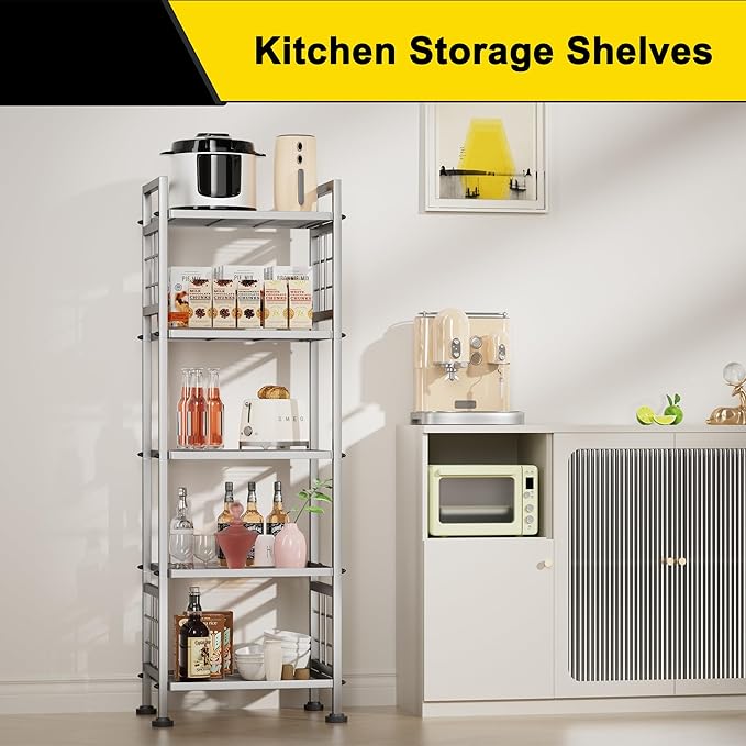 GIOTORENT 5-Wire Standing Storage Shelf, Metal Shelving Unit Pantry Rack for Laundry Kitchen Bathroom Organizer(Silver)