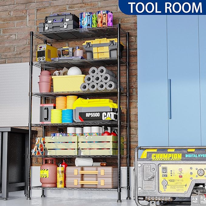 REGILLER 6-Wire Shelving Metal Storage Rack Adjustable Shelves,Standing Storage Shelf Units for Laundry Bathroom Kitchen Pantry Closet(Black,14.1" D x 36.1" W x 72" H)
