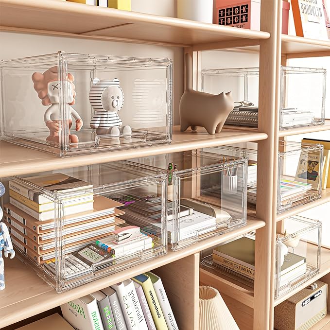 2 Packs Plastic Stackable Storage Drawers, Clear Desktop Drawer Organizers, 2 Drawer Storage Organizer, Make up Organizer with Drawers, Arcylic Drawers Organizer for Office Supplies, School, Home