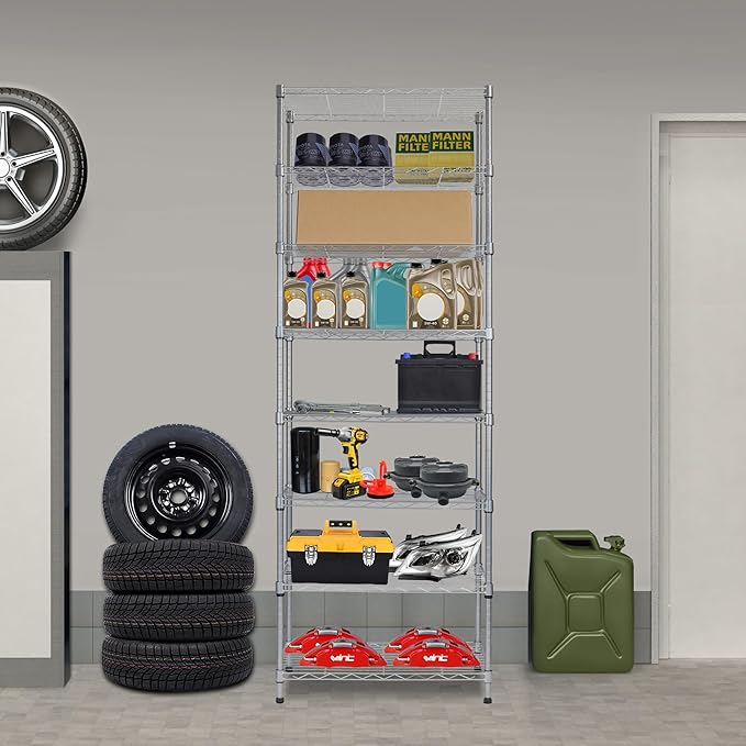 REGILLER 8-Wire Shelving Metal Storage Rack Adjustable Shelves,Standing Storage Shelf Units for Laundry Bathroom Kitchen Pantry Closet(Silver,13.9" D x 23.9" W x 72.1" H)