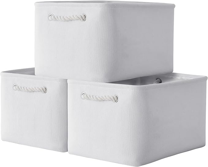 TheWarmHome Storage Basket for Shelves - 15.8x11.8x11.8 inch 3 Pack Fabric Storage Cubes, Collapsible Storage Bin for Organizing Organizer Closet Book Gift Dog(White)