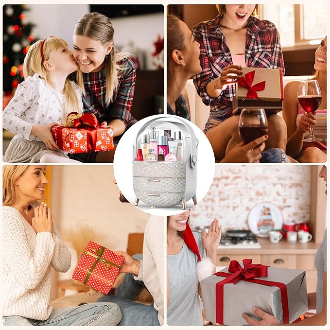 Teen Girls Gift Makeup Organizer,Skincare Organizer Jewelry Storage,Cosmetics Storage and Display Case,Make Up Holders and Organizers for Countertop,Bathroom Organizer (Pearl White)