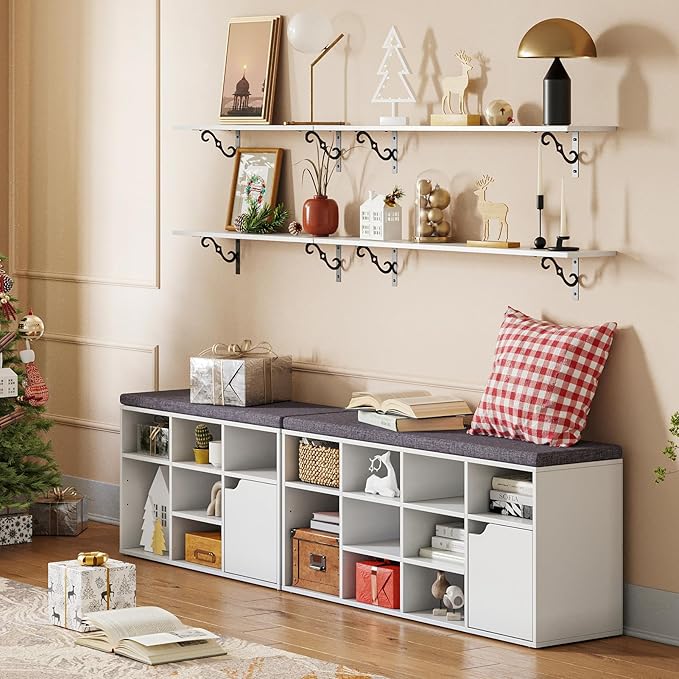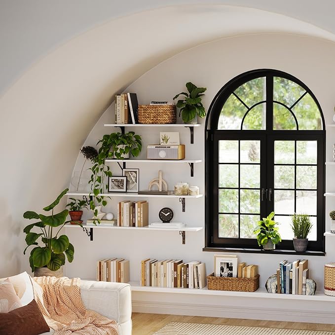 DINZI LVJ Long Wall Shelves, 39.4 Inch Large Floating Shelves Set of 2, Wide Display Shelf Wall Mounted with Brackets, Easy Hanging for Living Room, Toilet, Office, Bedroom, White