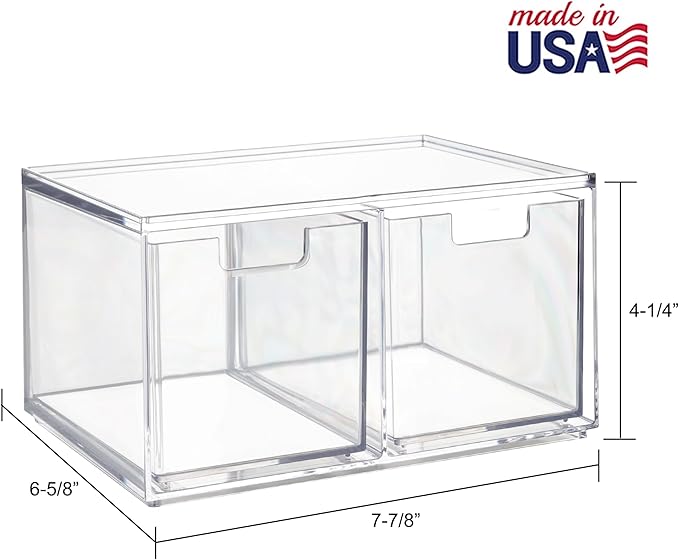 STORi Chloe Space-Saving Clear Drawer Organizer (4 Tall Drawers) Sort Office, Kitchen, Beauty Supplies, Makeup, Pens, Jewelry, Stationary, Made in USA