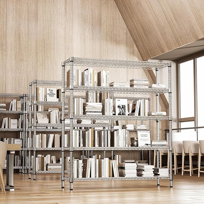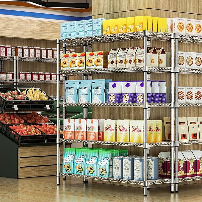 2200 Lbs 5 Tier Storage Rack Metal Wire Shelving Unit, Storage Standing Shelf Organizer for Laundry Bathroom Kitchen Pantry Closet Garage, Chrome 17.7" D x 59.1" W x 70.4" H
