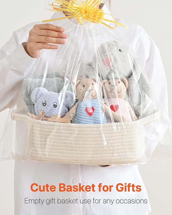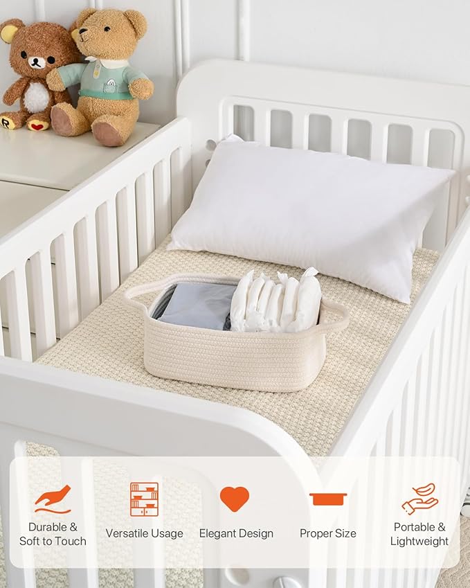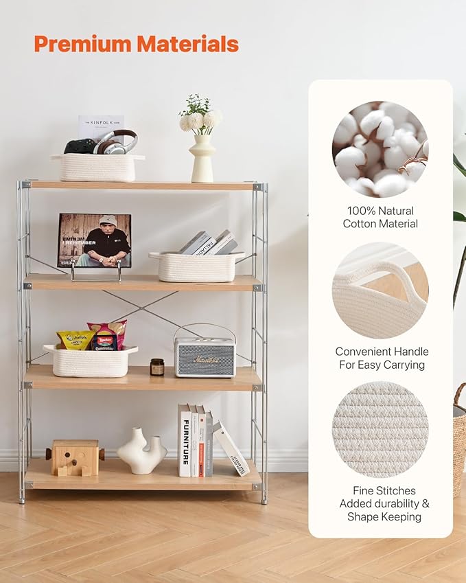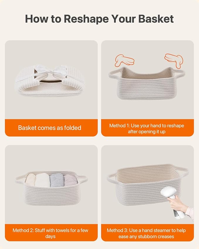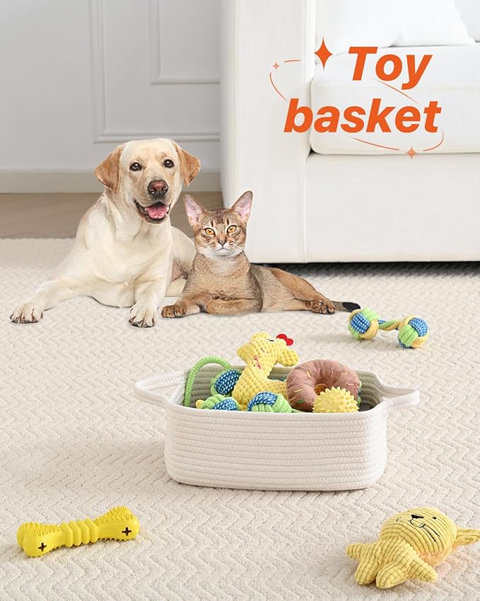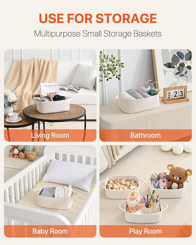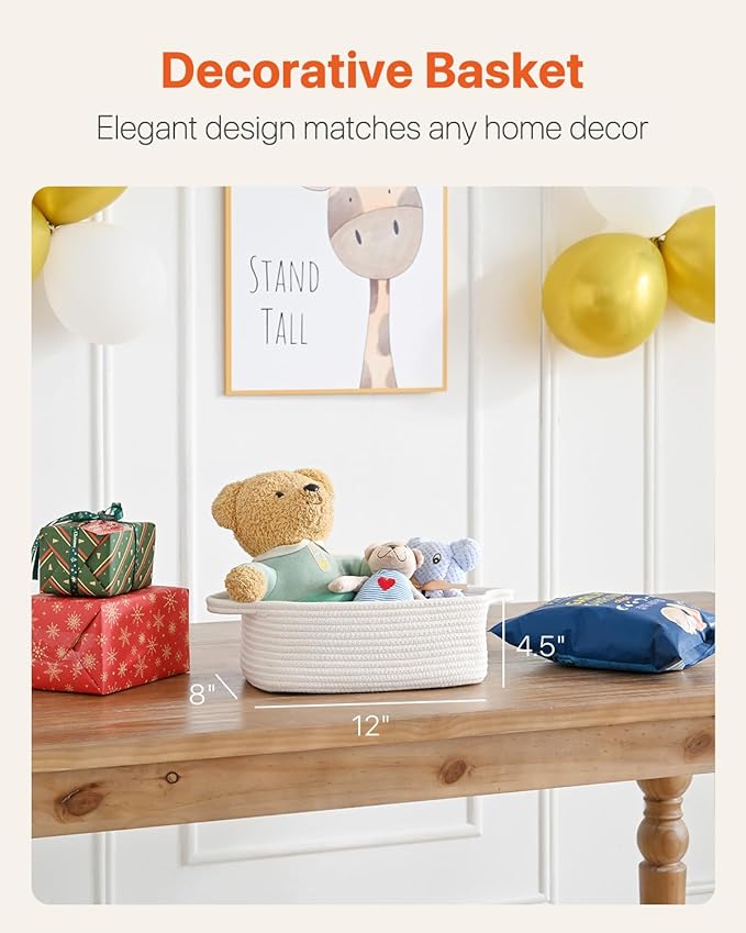 Small Woven Basket, 12 x 8 x 4.5 Inches, Small Storage Baskets for Organizing, Gift Baskets Empty, Cute Rope Shelf Closet Storage Bins for Shelves, Dog Toy Basket, Off White