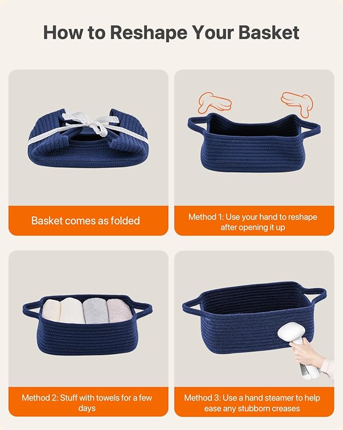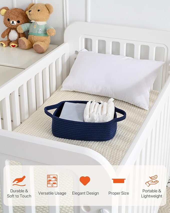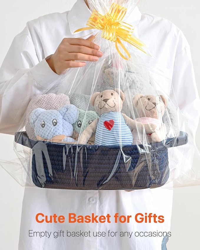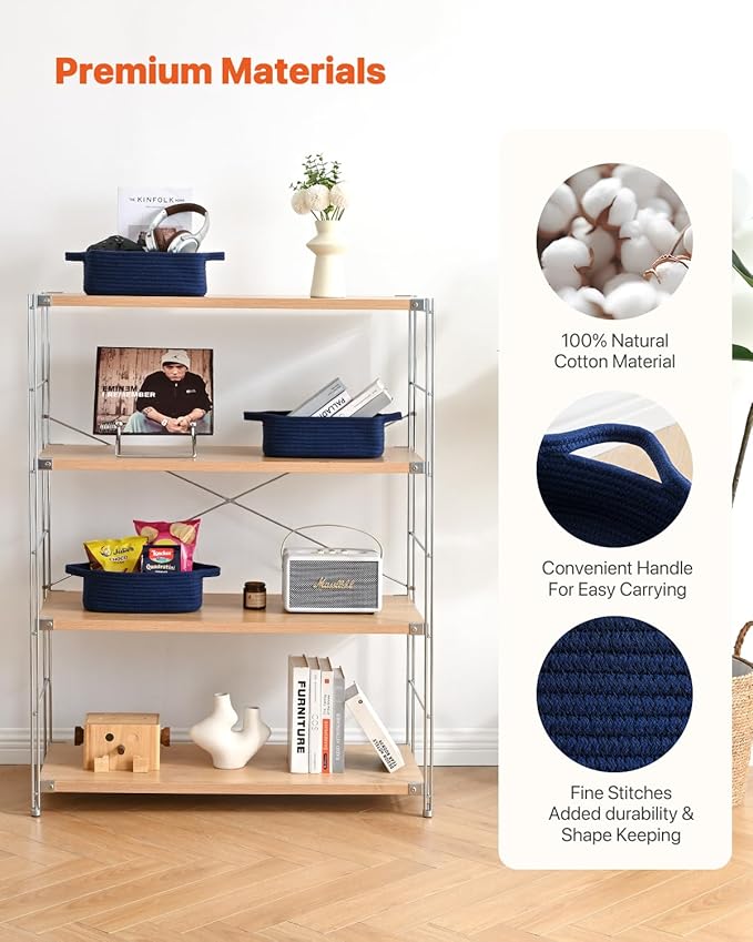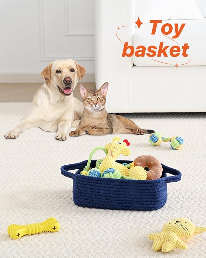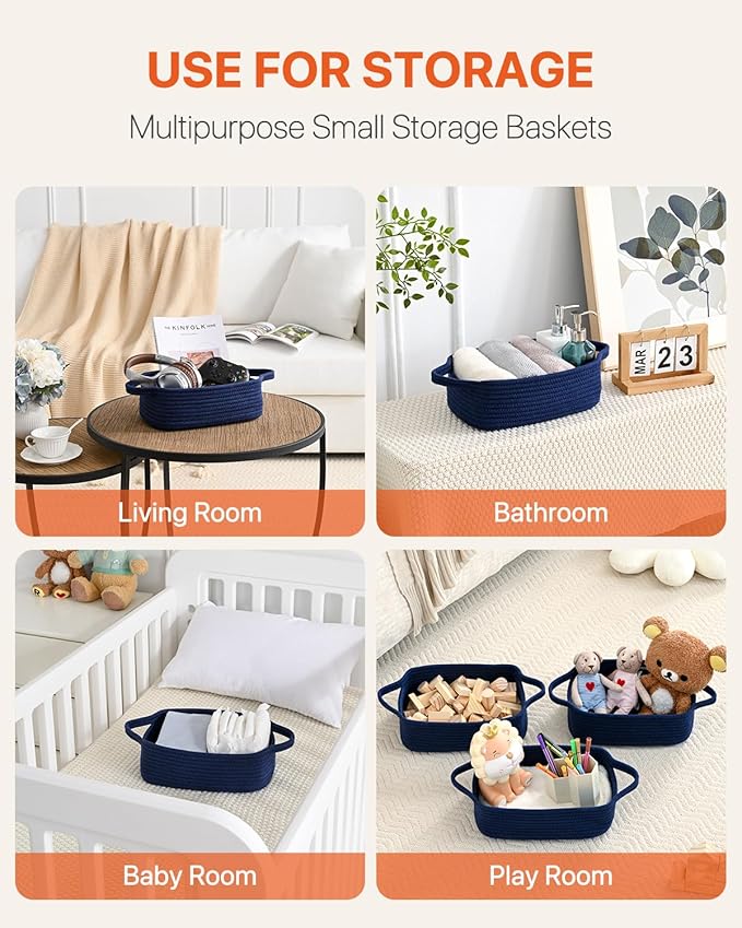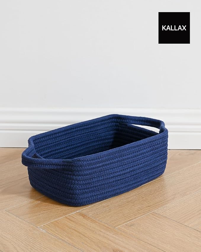 KALLAX Small Woven Basket, 12 x 8 x 4.5 Inches, Small Storage Baskets for Organizing, Gift Baskets Empty, Cute Rope Shelf Closet Storage Bins for Shelves, Dog Toy Basket, 3 Packs, Navy Blue