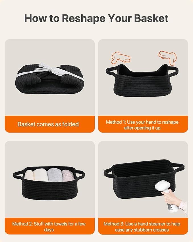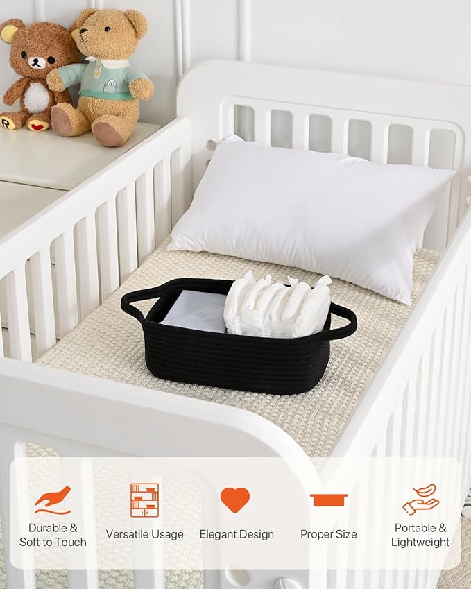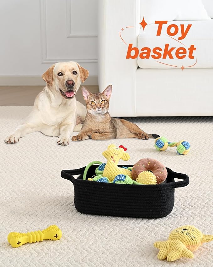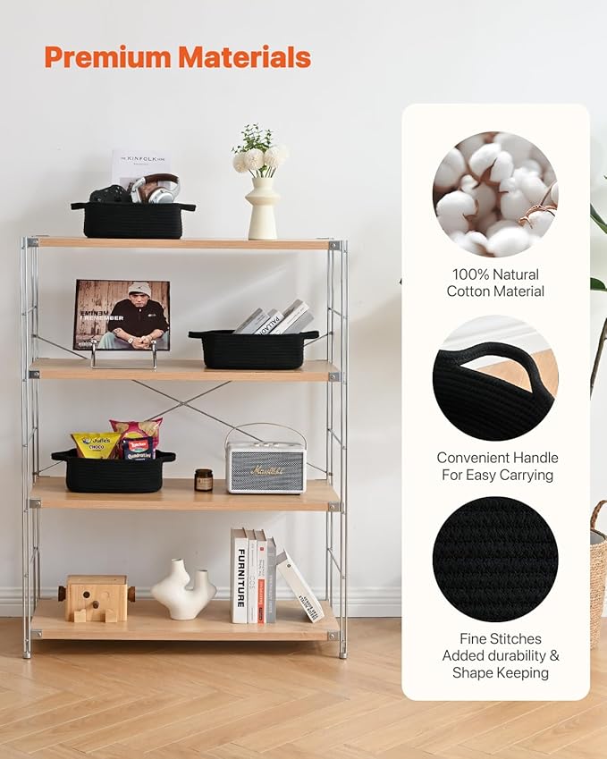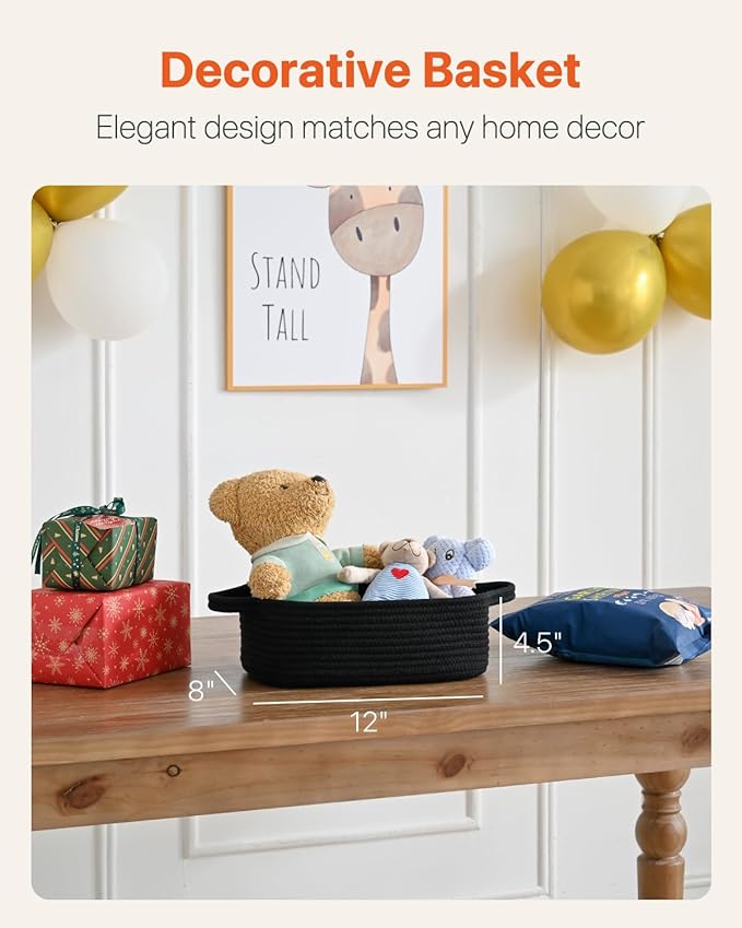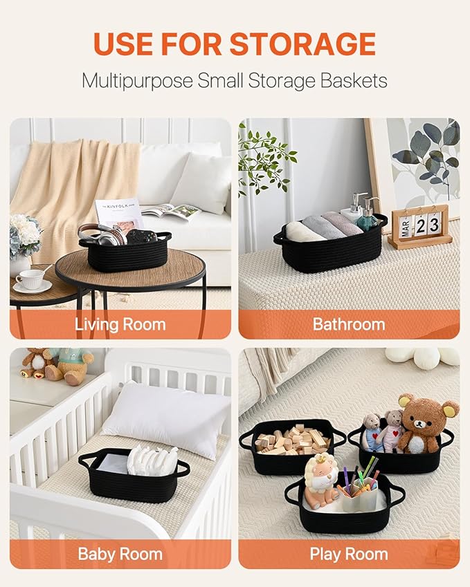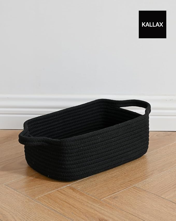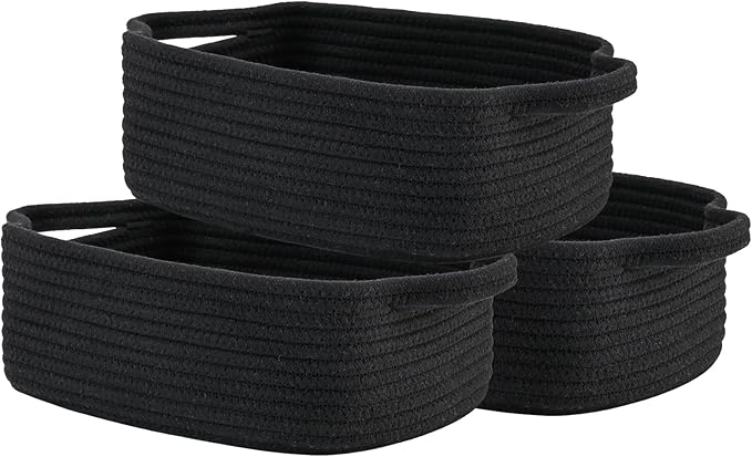 KALLAX Small Woven Basket, 12 x 8 x 4.5 Inches, Small Storage Baskets for Organizing, Gift Baskets Empty, Cute Rope Shelf Closet Storage Bins for Shelves, Dog Toy Basket, 3 Packs, Black