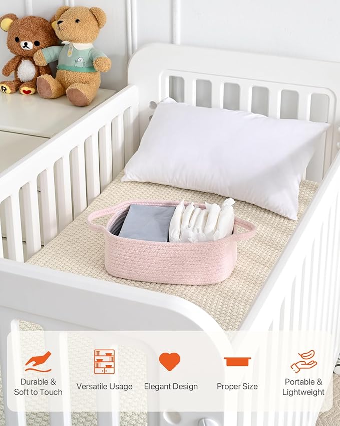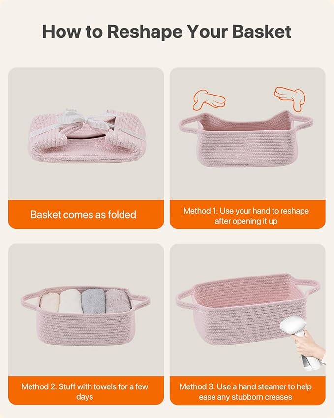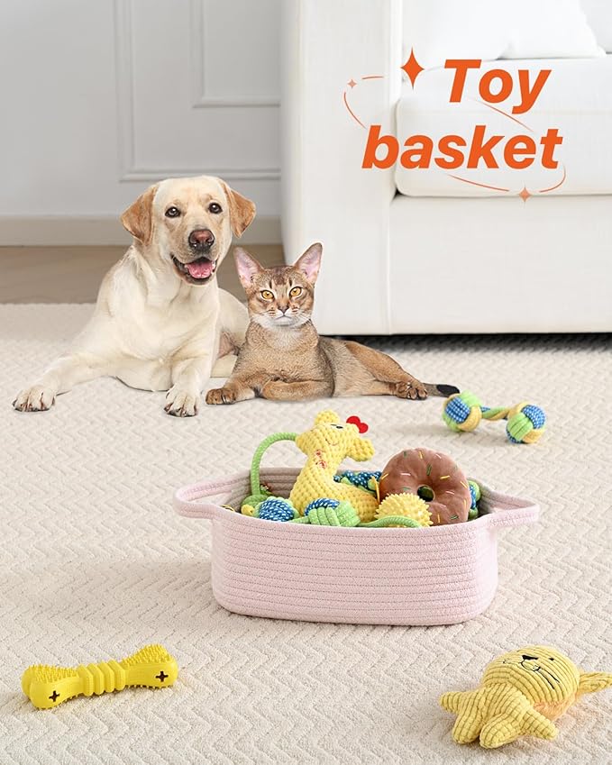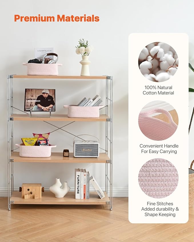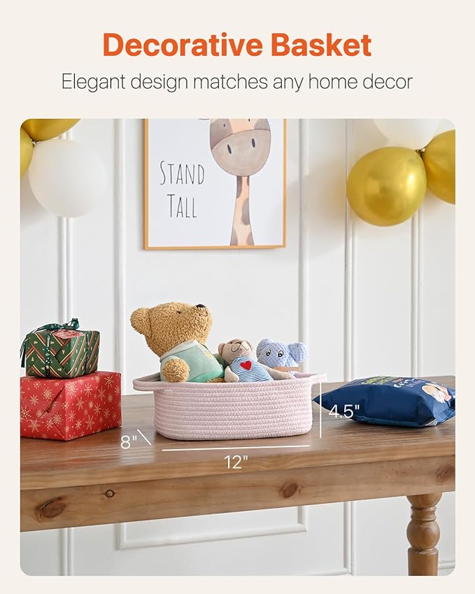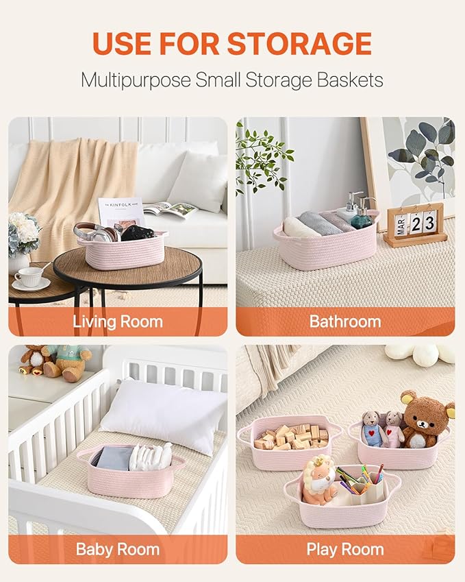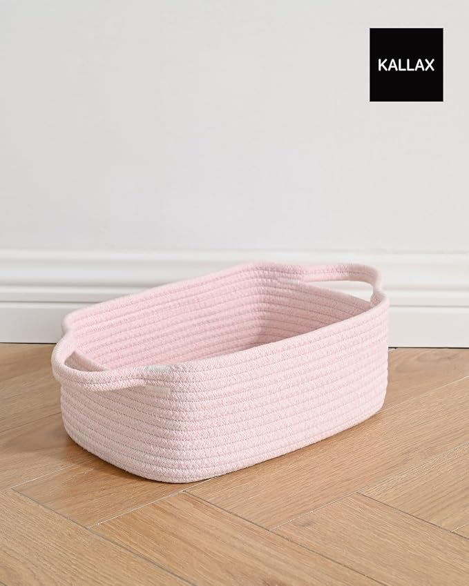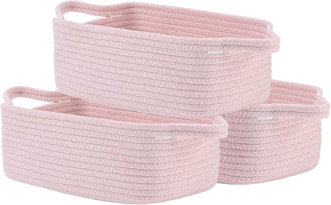 KALLAX Small Woven Basket, 12 x 8 x 4.5 Inches, Small Storage Baskets for Organizing, Gift Baskets Empty, Cute Rope Shelf Closet Storage Bins for Shelves, Dog Toy Basket, 3 Packs, Light Pink