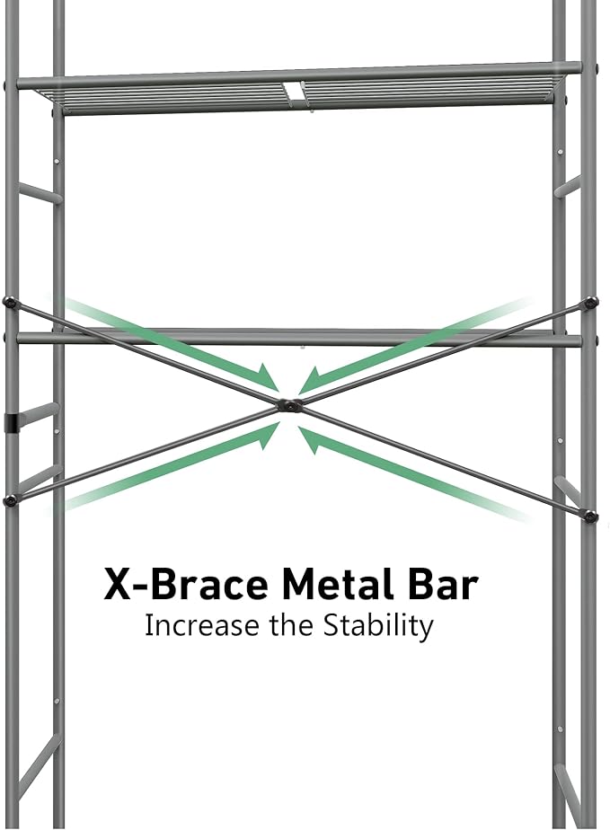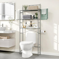 3-Tier Over The Toilet Storage Rack, Freestanding Bathroom Shelves Organizer with Hooks and Toilet Paper Holder, Space Saver Metal Shelf for Small Bathroom, Grey