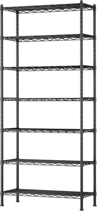 REGILLER 7-Tier Metal Storage Rack Adjustable Shelf,Storage Unit Shelf for Laundry Bathroom Kitchen Pantry Closet(Black,13.9" D x 23.9" W x 71.6" H)