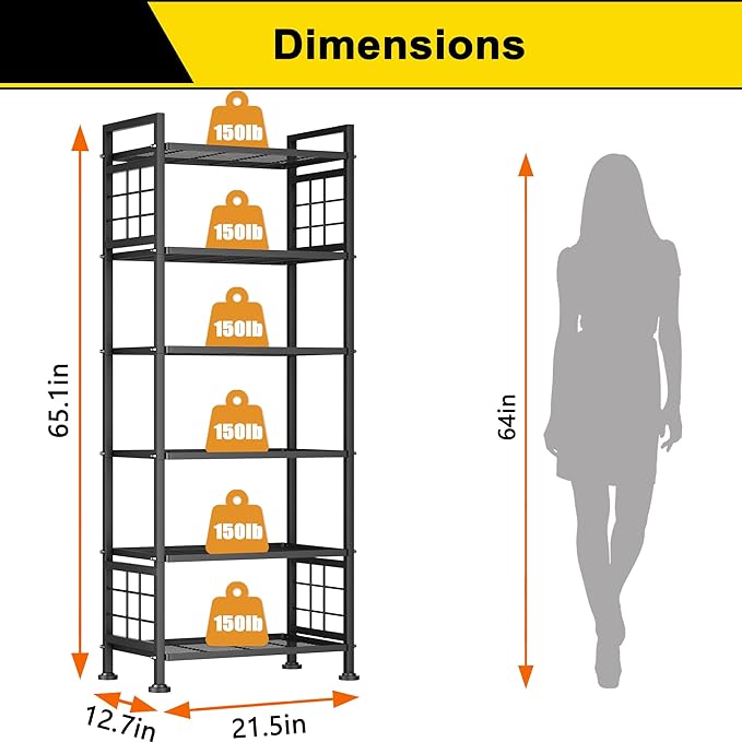 GIOTORENT 6-Wire Garage Shelving Storage Shelves, Metal Shelving Unit Pantry Rack, Kitchen Storage Adjustable Shelf 900Lbs Capacity for Laundry Kitchen Bathroom Organizer(Black)