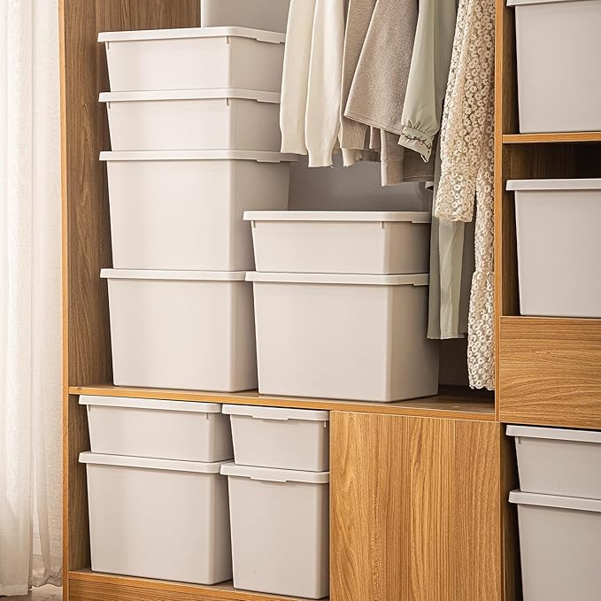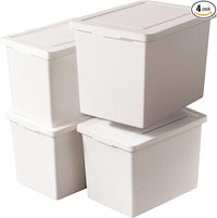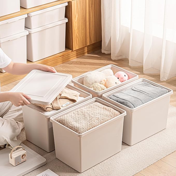 LightGray Storage Bins with lids,Stackable Plastic Boxes Set of 4,Storage busket with handle for Organizing Snacks, Crafts,Crafts, Tools,books (LightGray, 4XL)