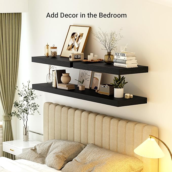 Heimlove 12 Inch Deep Floating Shelves, 55 x 12 inches Long Wall Shelf, Large Extra Display Shelf & Storage Shelf, Rustic Wood Wall Shelves for Fireplace Mantel, Set of 1(Black)
