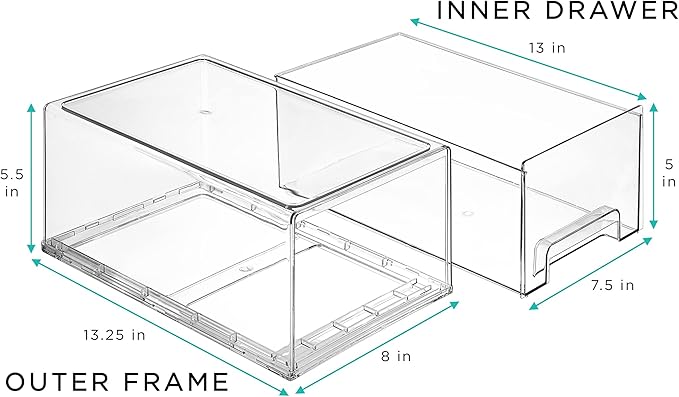 Sorbus Large Clear Stackable Storage Drawers – 2-Pack Plastic Organizer Bins with Handles – Stackable Pull-Out Storage Drawers for Closet, Pantry, Office, Bathroom, Craft, and Toy Organization
