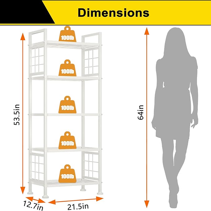 GIOTORENT 5-Wire Garage Shelving Storage Shelves, Metal Shelving Unit Pantry Rack, Kitchen Storage Adjustable Shelf 750Lbs Capacity for Laundry Kitchen Bathroom Organizer(White)