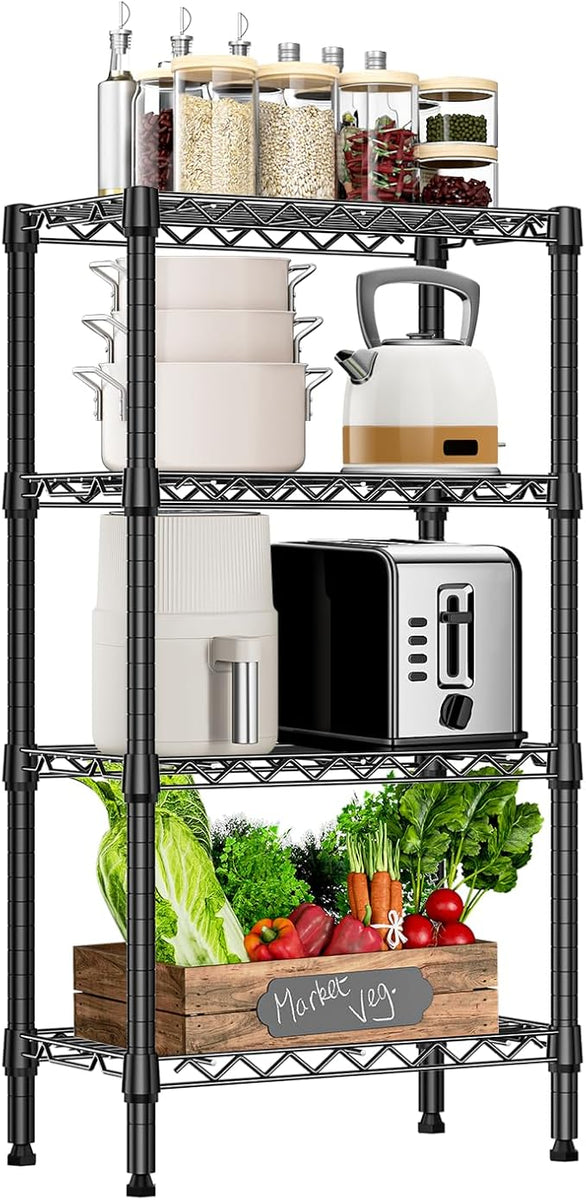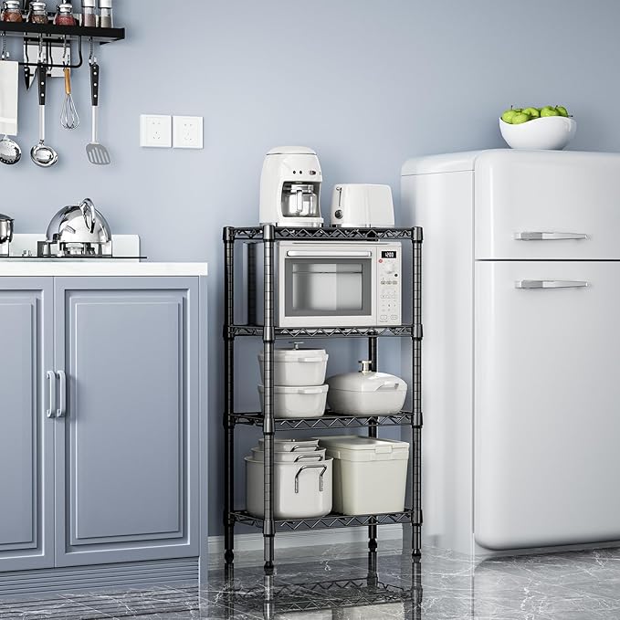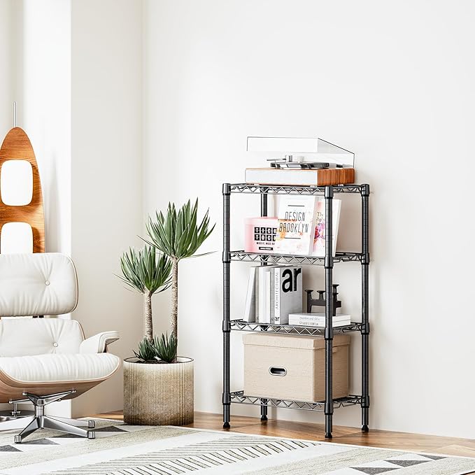 1000 lbs 4 Tier Shelf Metal Storage Shelves Wire Rack Closet Organizers with PP Board for Garage Kitchen Bathroom Laundry Black 11.8" D x 21.7" W x 39.5" H