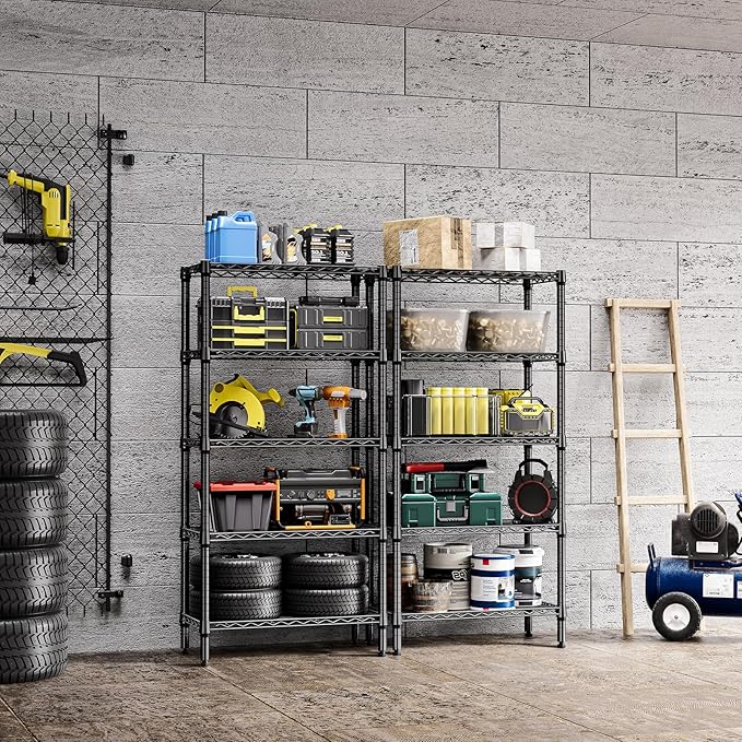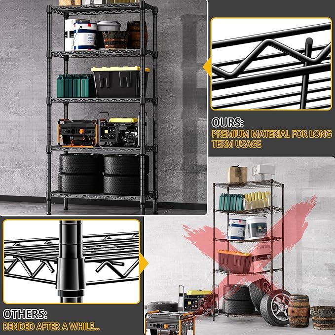 1250 lbs 5 Tier Shelf Metal Storage Shelves Wire Rack Closet Organizers for Garage Kitchen Bathroom Laundry Black 11.8" D x 29.5" W x 59.5" H