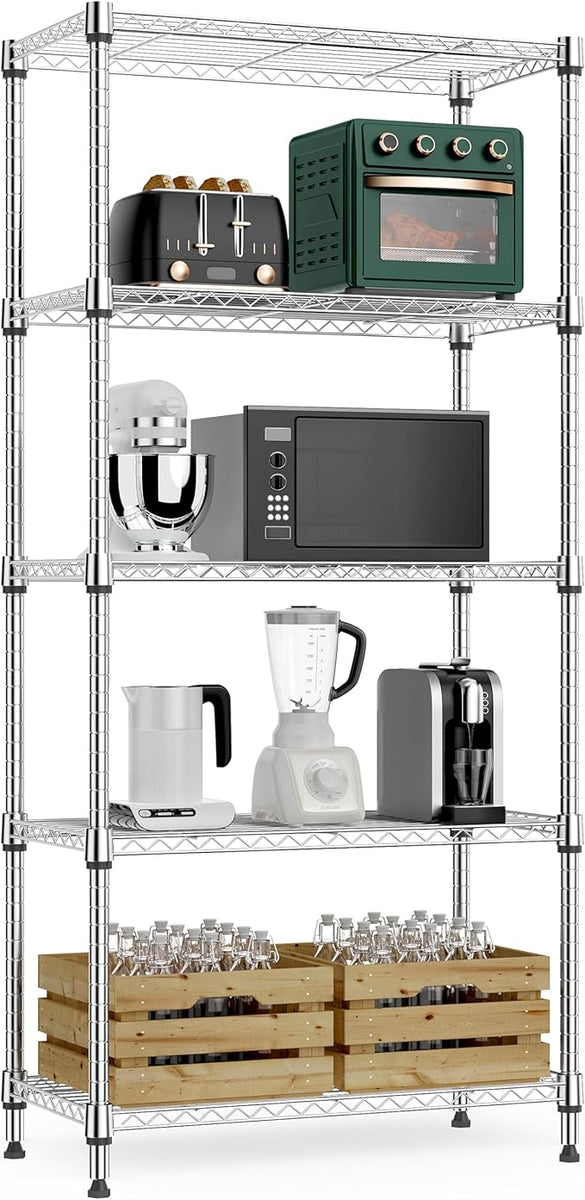 1250 lbs 5 Tier Shelf Metal Storage Shelves Wire Rack Closet Organizers for Garage Kitchen Bathroom Laundry Black 11.8" D x 23.6" W x 59.5" H