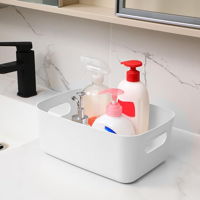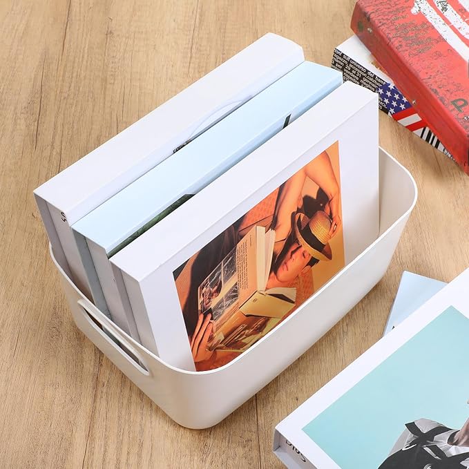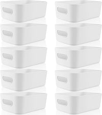 Zopeal Plastic Storage Bins 10 Pcs White Pantry Organizer Bins Small Baskets Storage Containers for Home Kitchen (12 x 8 x 5 Inches)