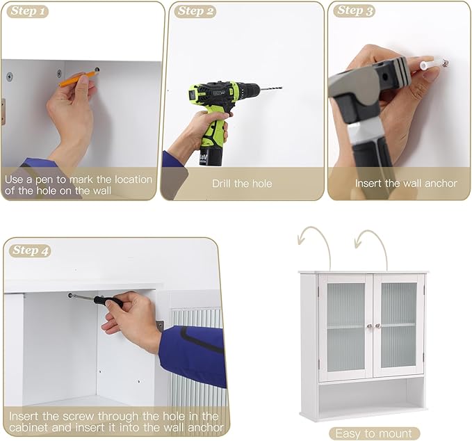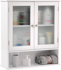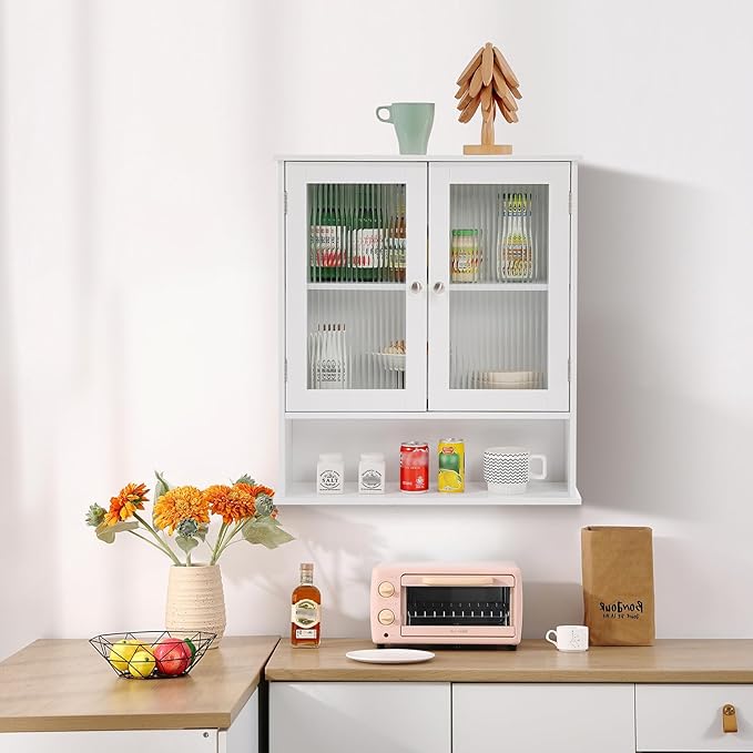 LITA Bathroom Wall Cabinet with Glass Doors, Medicine Cabinet with Adjustable Shelves, Space Saver Over Toilet Storage Cabinet for Bathroom, Living Room, Kitchen, White