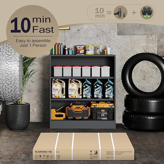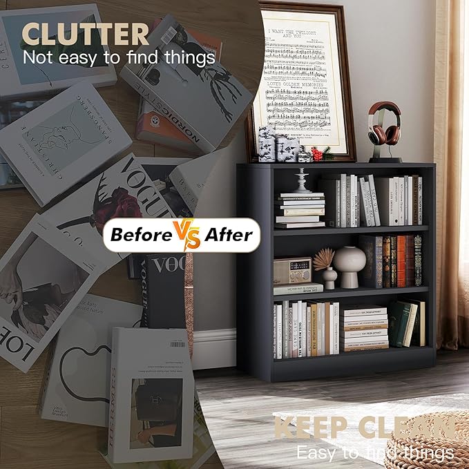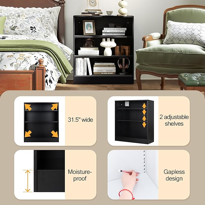 Metal Bookcase with Back Panel, 3 Tier Open Shelf Bookcase with Adjustable Shelves, 31.5 Wide Storage Cabinet Sturdy Steel Cube Shelf Organizer, Free Standing Display Unit