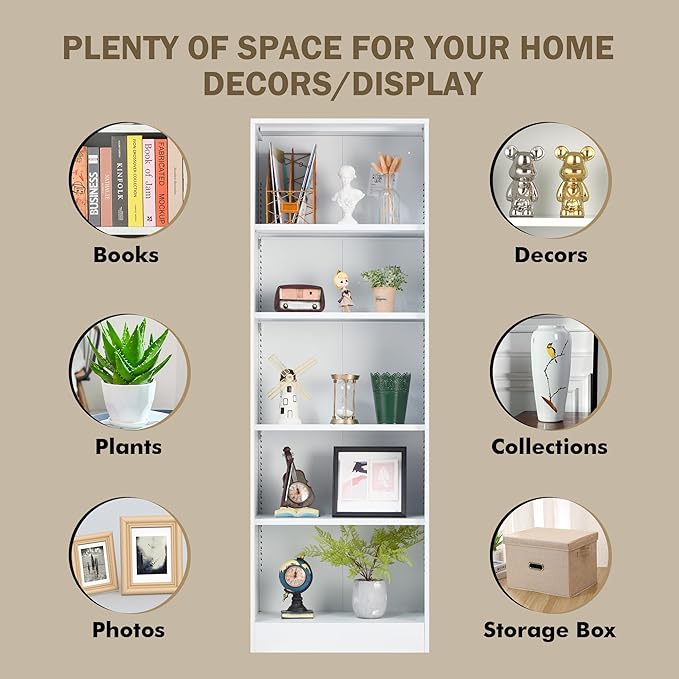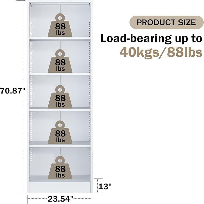 Metal Bookcase with Back Panel, 5 Tier Open Shelf Bookcase with Adjustable Shelves,23.54 Wide Storage Cabinet Sturdy Steel Cube Shelf Organizer, Free Standing Display Unit Sale
