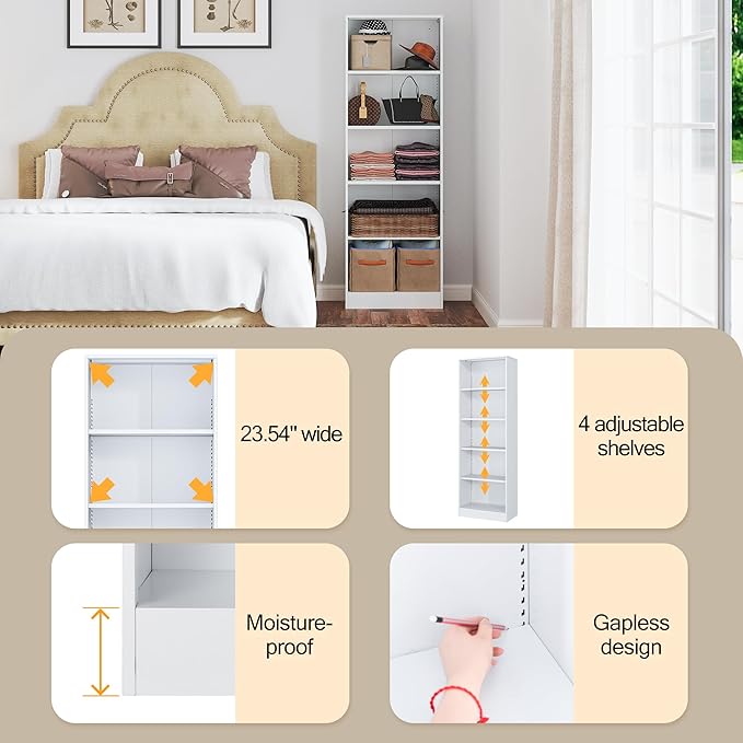 Metal Bookcase with Back Panel, 5 Tier Open Shelf Bookcase with Adjustable Shelves,23.54 Wide Storage Cabinet Sturdy Steel Cube Shelf Organizer, Free Standing Display Unit