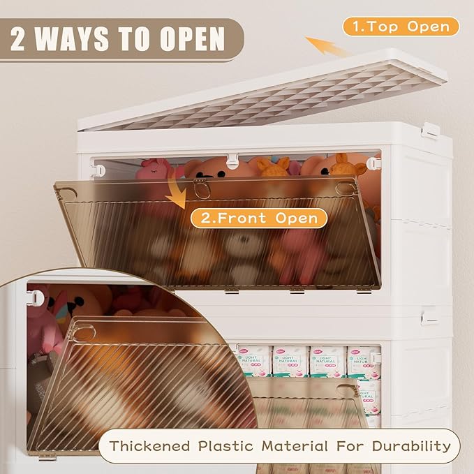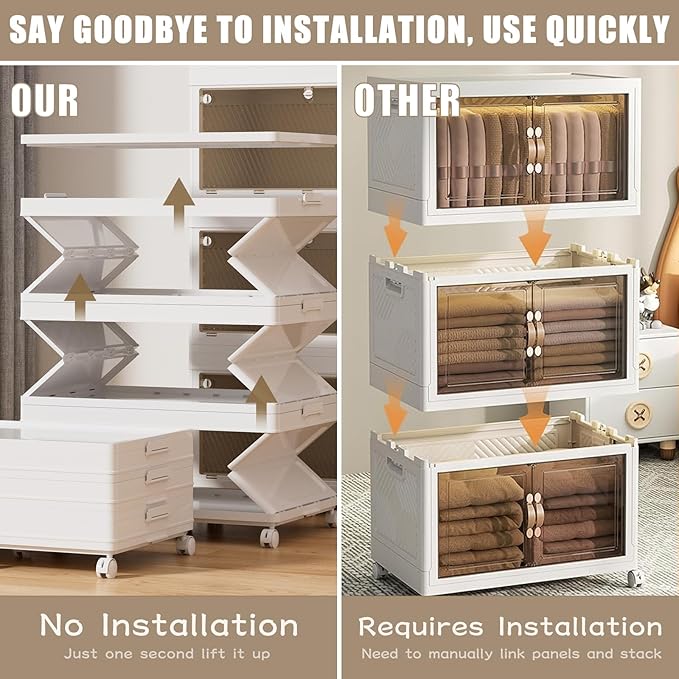 70gal / 282qt Stackable Storage Bins With Lids, 3-Tier Plastic Storage Bins With Wheel, Closet Organizers And Storage, Collapsible Storage Cabinet For Bedroom, Dorm Room, Study, Office