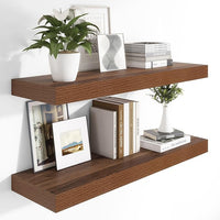Heimlove 12 Inch Deep Floating Shelves, 48 x 12 inches Long Wall Shelf, Large Display Shelf & Storage Shelf, Rustic Wood Wall Shelves for Fireplace Mantel, Set of 2(Walnut)