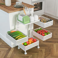 Fruit Basket for Kitchen No Assembly, Rolling Rotating Storage cart,Bathroom Shelf,Storage Drawer Cart for Bathroom,Metal Vegetable Rolling cart(Bright White, 4 Tier-Square)