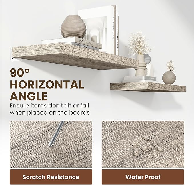 48 Inch Floating Shelves, 11.6 Inch Deep Floating Shelves for Wall, Floating Shelf with Invisible Brackets, Deep Shelves for Bathroom, Bedroom, Living Room, Vintage Gray Oak