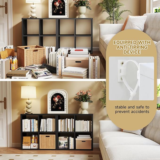 4 Cube Storage Organizer, Cubicle Open Back Decorative Book Shelf, 2-Tier Space Saving Storage Bookcase, Metal Display Shelf for Living Room,Office,Closet