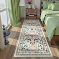 Deerly Floral Washable Rugs 8x10 Large Vintage Living Room Carpet Boho Non-Slip Soft Low Pile Thin Bedroom Floor Mat Indoor for Dining Room Playroom Nursery Farmhouse, Beige/Light Pink/Multi